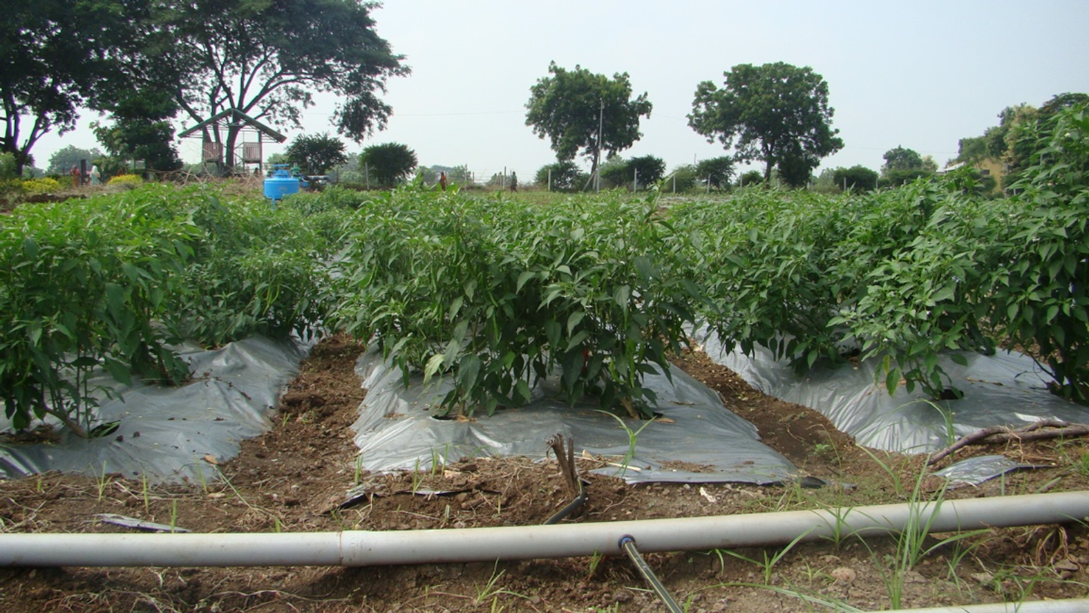 - It is recommended to use drip irrigation at 80% evapotranspiration replenishment with polyethylene mulch (silver colour and 50 micron thickness) for highest growth and yield of chilli crop.