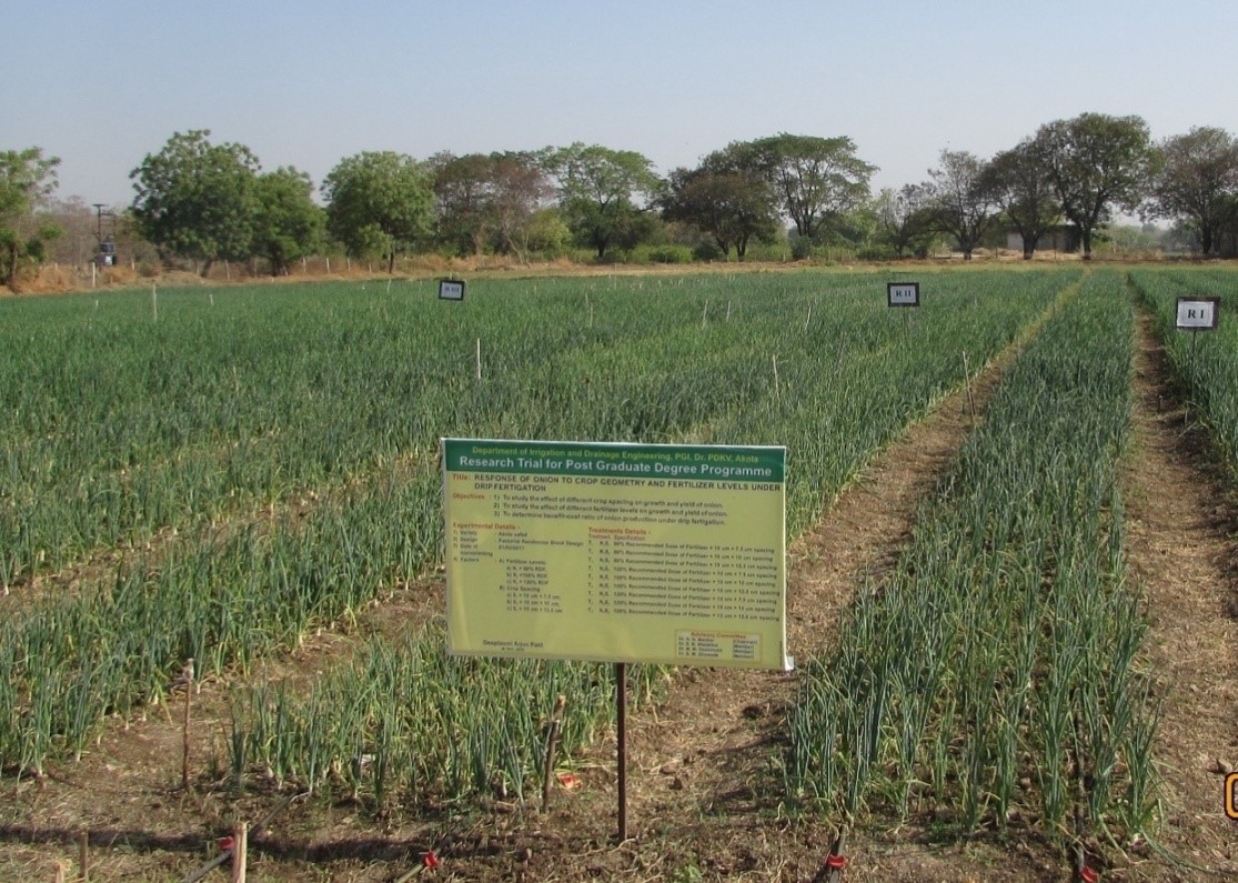 - For higher onion bulb yield and economic returns it is recommended to use crop spacing of 10 x 7.5 cm with application of 100 per cent of RDF (i.e. 100:50:50 NPK, kg/ha) under drip fertigation.
