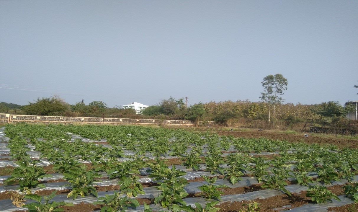 - It is recommended to use drip fertigation with fertilizer level of 125 % RDF (i.e. 188:94:94 N:P2O5:K2O kg ha-1) to be applied in 15 splits at an interval of 10 days (half dose in first 6 equal splits and remaining half dose in 9 equal splits) and 80 % replenishment of ETc along with silver polyethylene mulch, to obtain higher yield of brinjal and benefit cost ratio.